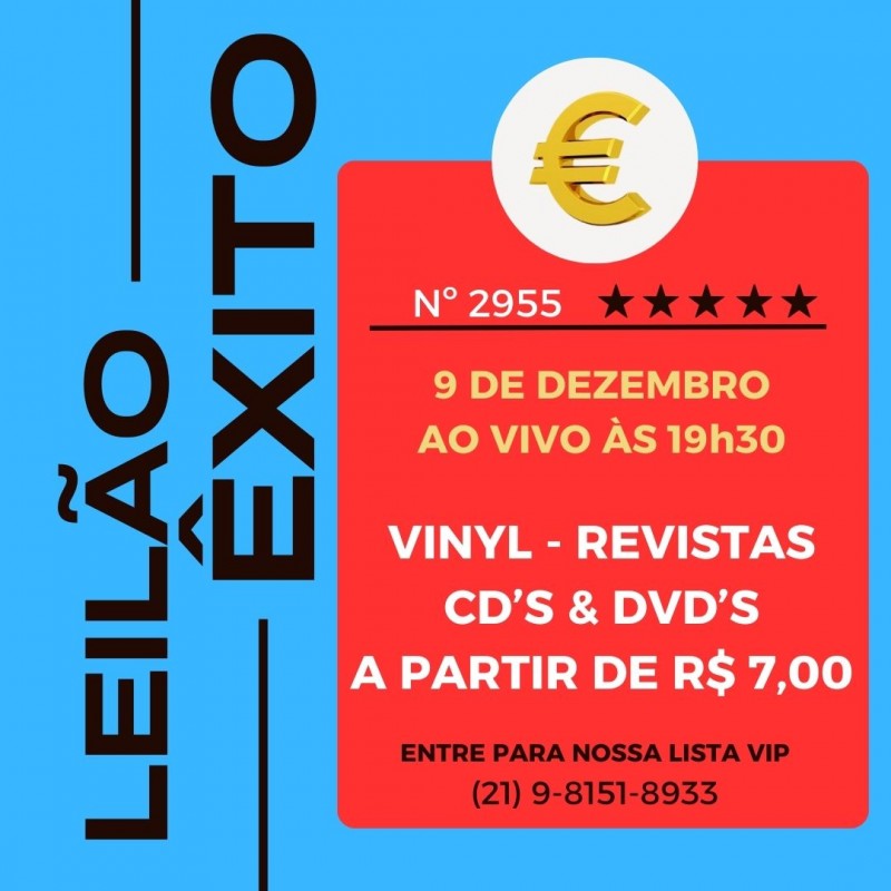 1º LEILÃO ÊXITO - VINIL - CD'S - DVD'S - LIVROS - REVISTAS - COLECIONISMO.